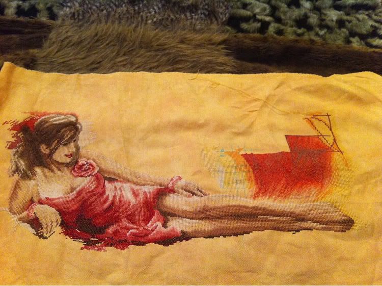 | Воть. Один хвостик дошила. Еще куча осталась Кот в ванише отстирался. Я все-таки решила надпись вышить - без нее сюжет не так понятен, на мой взгляд. Теперь думаю, что бы с ним сделать...